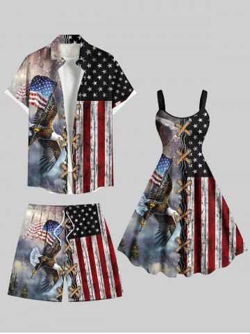 Shorts > Plus Size 3D Lace Up Patriotic American Flag Eagle Print Drawstring Pocket Beach Shorts For Men