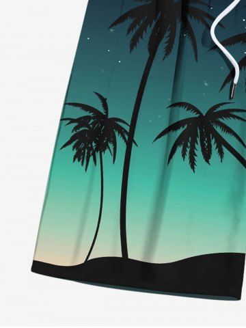 Plus Size Coconut Tree Beach Ombre Galaxy Print Hawaii Drawstring Beach Shorts For Men - Green - 2xl
