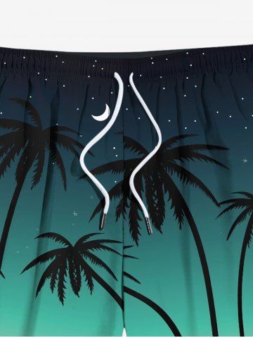 Plus Size Coconut Tree Beach Ombre Galaxy Print Hawaii Drawstring Beach Shorts For Men - Green - 8xl