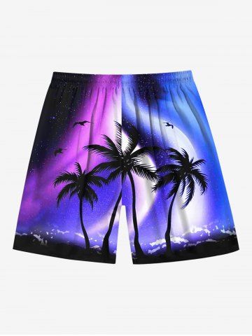 Shorts > Plus Size Coconut Tree Colorful Ombre Aurora Galaxy Print Hawaii Drawstring Beach Shorts For Men