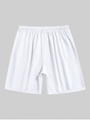 Plus Size Coconut Tree Flamingo Hand-painted Print Hawaii Drawstring Beach Shorts For Men - White - M