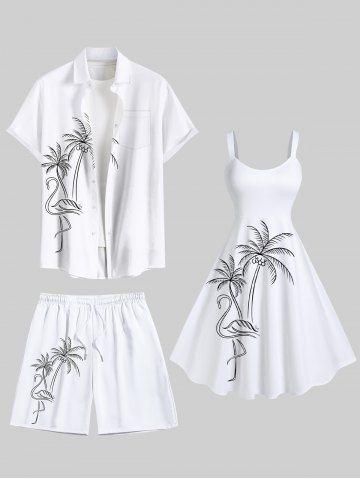 Plus Size Coconut Tree Flamingo Hand-painted Print Hawaii Drawstring Beach Shorts For Men - White - 3xl