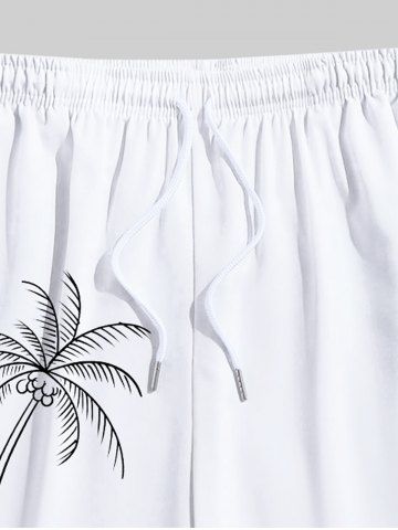 Plus Size Coconut Tree Flamingo Hand-painted Print Hawaii Drawstring Beach Shorts For Men - White - 8xl