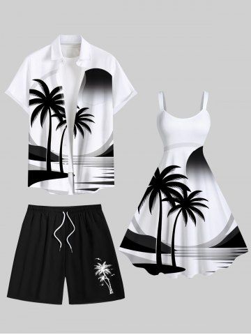 Plus Size Coconut Tree Hand-painted Print Hawaii Drawstring Beach Shorts For Men - Black - 4xl