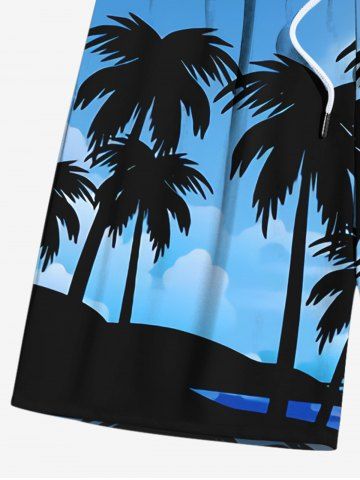 Plus Size Coconut Tree Moon Ombre Sky Print Hawaii Drawstring Beach Shorts For Men - Blue - 3xl