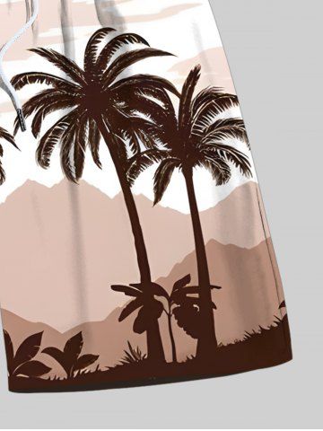 Plus Size Coconut Tree Mountain Print Hawaii Drawstring Beach Shorts For Men - Coffee - M