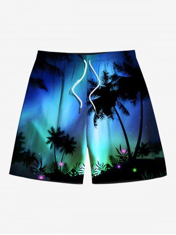 Shorts > Plus Size Coconut Tree Ombre Aurora Galaxy Print Hawaii Drawstring Beach Shorts For Men