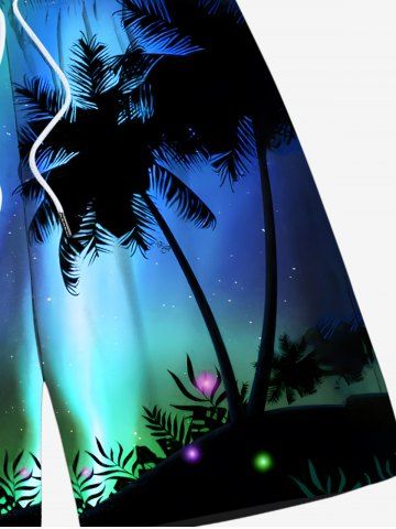 Shorts > Plus Size Coconut Tree Ombre Aurora Galaxy Print Hawaii Drawstring Beach Shorts For Men