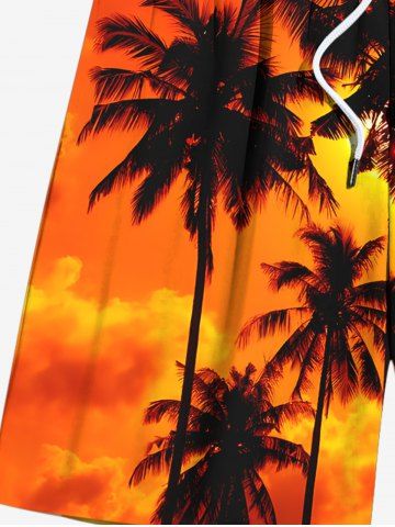 Plus Size Coconut Tree Ombre Dusk Print Hawaii Drawstring Beach Shorts For Men - Dark Orange - 3xl