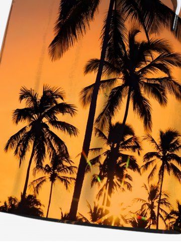 Plus Size Coconut Tree Ombre Dusk Print Hawaii Drawstring Pocket Beach Shorts For Men - Dark Orange - M