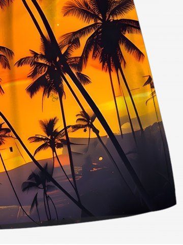 Plus Size Coconut Tree Ombre Dusk Sunset Print Hawaii Drawstring Beach Shorts For Men - Dark Orange - 7xl