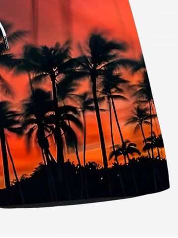 Plus Size Coconut Tree Ombre Dusk Sunset Print Hawaii Drawstring Beach Shorts For Men - Red - 7xl