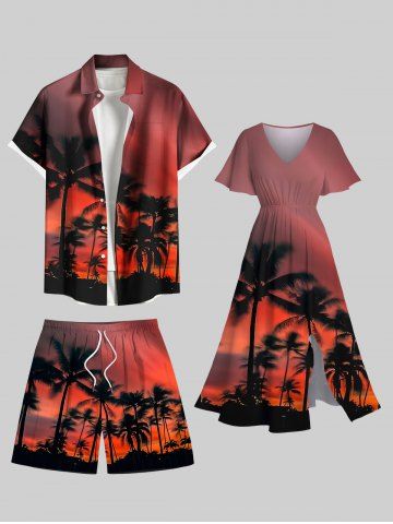 Plus Size Coconut Tree Ombre Dusk Sunset Print Hawaii Drawstring Beach Shorts For Men - Red - 8xl