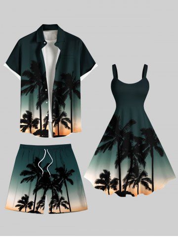 Plus Size Coconut Tree Ombre Galaxy Print Hawaii Drawstring Pocket Beach Shorts For Men - Green - 5xl
