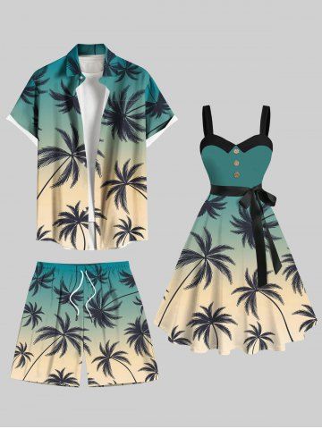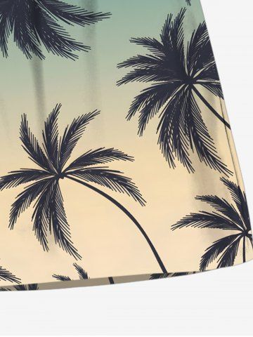 Plus Size Coconut Tree Ombre Print Hawaii Drawstring Pocket Beach Shorts For Men - Green - 2xl