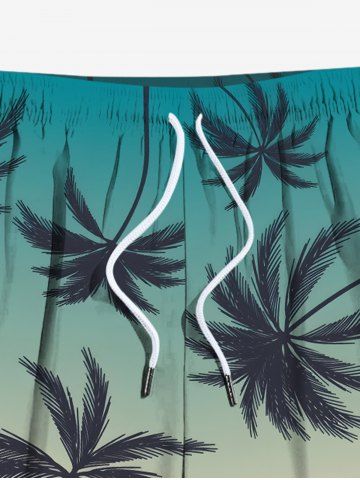 Plus Size Coconut Tree Ombre Print Hawaii Drawstring Pocket Beach Shorts For Men - Green - 6xl