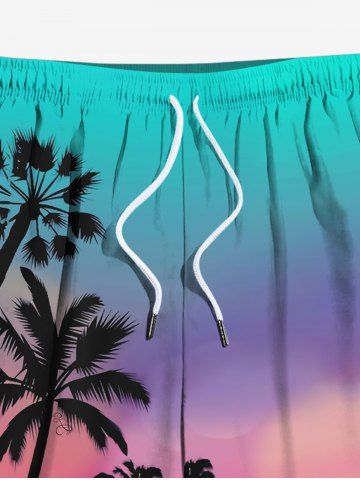 Shorts > Plus Size Coconut Tree Ombre Sky Print Hawaii Drawstring Beach Shorts For Men