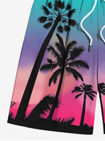 Shorts > Plus Size Coconut Tree Ombre Sky Print Hawaii Drawstring Beach Shorts For Men