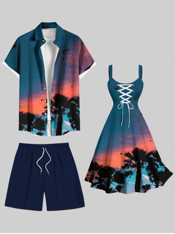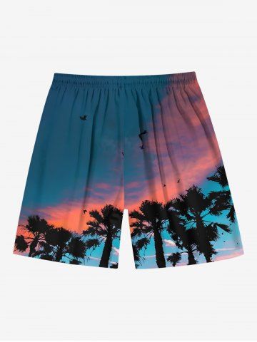 Shorts > Plus Size Coconut Tree Ombre Sky Print Hawaii Drawstring Beach Shorts For Men