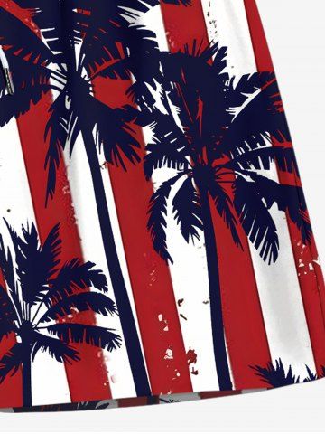 Plus Size Coconut Tree Patriotic American Flag Print Hawaii Drawstring Pocket Beach Shorts For Men - Red - 6xl