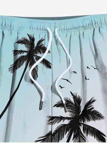 Plus Size Coconut Tree Sea Beach Bird Print Hawaii Drawstring Beach Shorts For Men - Green - 6xl