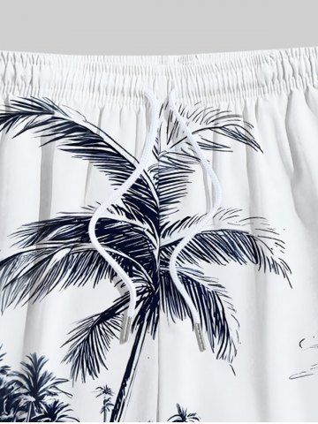 Plus Size Coconut Tree Sea Beach Print Hawaii Drawstring Beach Shorts For Men - White - 2xl