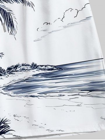 Plus Size Coconut Tree Sea Beach Print Hawaii Drawstring Beach Shorts For Men - White - 8xl