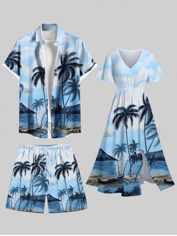 Shorts > Plus Size Coconut Tree Sea Plane Print Hawaii Drawstring Beach Shorts For Men