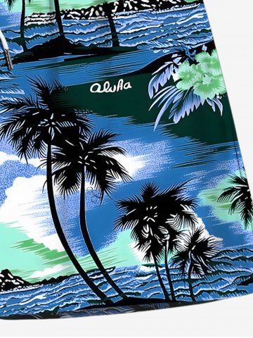 Plus Size Coconut Tree Sea Seascape Print Hawaii Drawstring Beach Shorts For Men - Blue - L