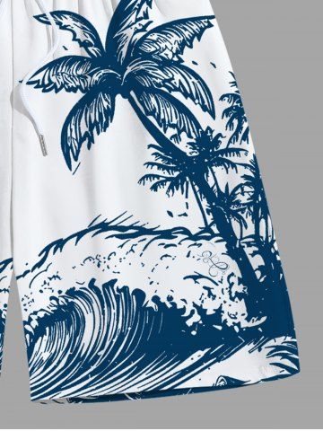 Plus Size Coconut Tree Sea Wave Bird Print Hawaii Drawstring Beach Shorts For Men - White - 6xl