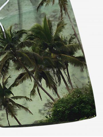 Plus Size Coconut Tree Sea Waves Print Hawaii Drawstring Beach Shorts For Men - Green - 4xl