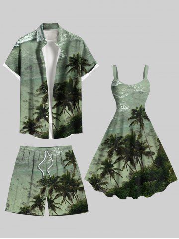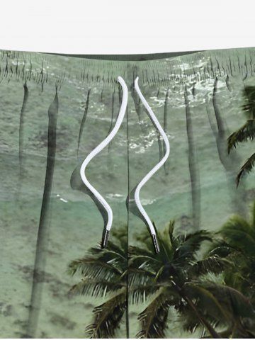 Plus Size Coconut Tree Sea Waves Print Hawaii Drawstring Beach Shorts For Men - Green - 8xl