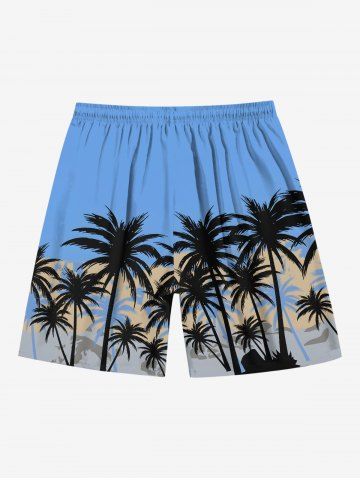 Shorts > Plus Size Coconut Tree Sky Print Hawaii Drawstring Beach Shorts For Men