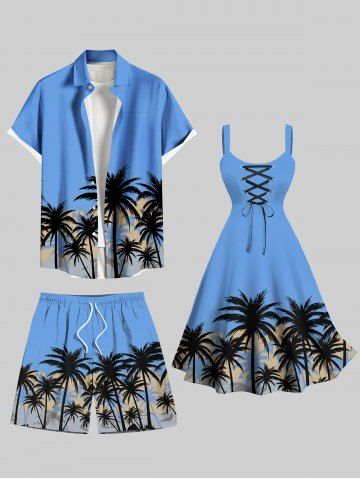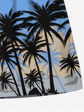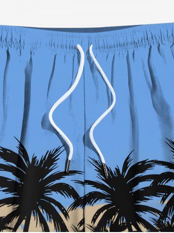 Plus Size Coconut Tree Sky Print Hawaii Drawstring Beach Shorts For Men - Blue - 4xl