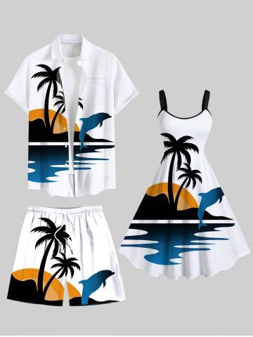 j*****e5Coconut Tree Sea Dolphin Sun Print Plus Size Matching Hawaii Beach Outfit For CouplesColor: WHITEI ordered this for my wife she loves the short shirt combo and wears it alot. I love my dress we wore it on vacation got alot of compliments. We will order again and again