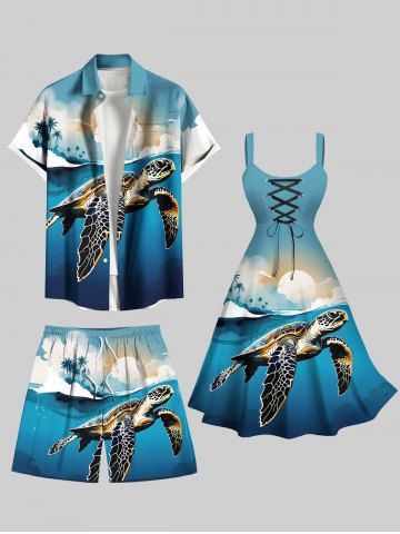 Shorts > Plus Size Coconut Tree Sun Sea Turtle Print Hawaii Sea Creatures Drawstring Beach Shorts For Men