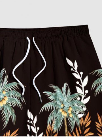 Plus Size Coconut Tree Tropical Leaf Flower Print Hawaii Drawstring Beach Shorts For Men - Deep Brown - 4xl