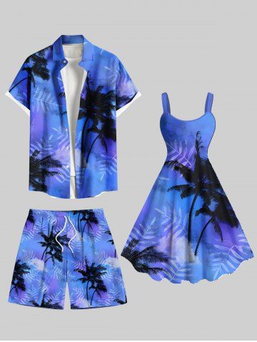 Shorts > Plus Size Coconut Tree Tropical Leaf Tie Dye Ombre Sky Print Hawaii Drawstring Beach Shorts For Men