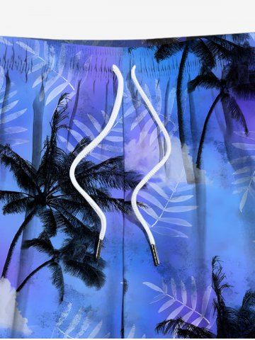 Plus Size Coconut Tree Tropical Leaf Tie Dye Ombre Sky Print Hawaii Drawstring Beach Shorts For Men - Blue - 2xl
