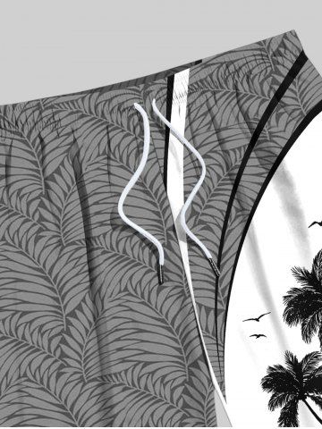 Plus Size Coconut Tree Tropical Leaves Curve Print Hawaii Drawstring Beach Shorts For Men - Gray - 3xl
