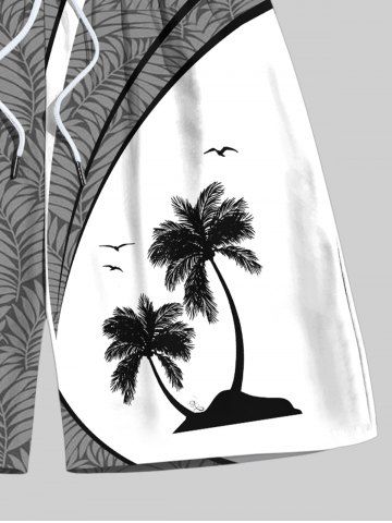 Plus Size Coconut Tree Tropical Leaves Curve Print Hawaii Drawstring Beach Shorts For Men - Gray - 8xl