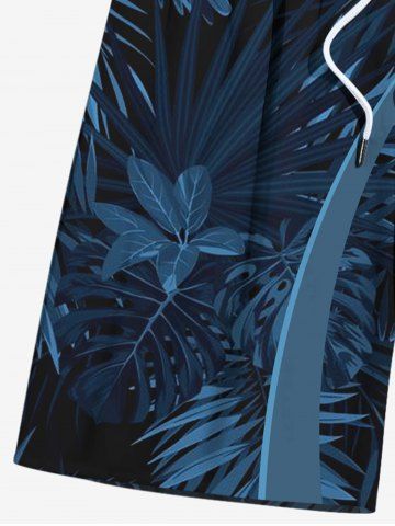 Plus Size Coconut Tree Tropical Leaves Curve Print Hawaii Drawstring Beach Shorts For Men - Blue - 7xl