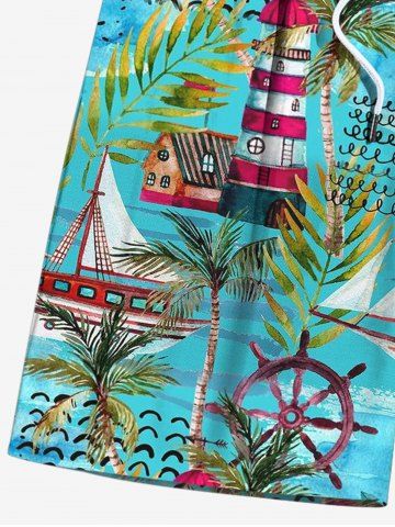 Plus Size Coconut Tree Tropical Leaves Sailboat Duck Print Hawaii Cruise Drawstring Beach Shorts For Men - Green - 3xl