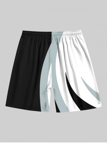Plus Size Colorblock Curve Print Hawaii Drawstring Beach Shorts For Men - Black - L