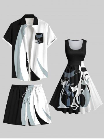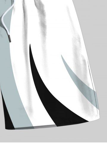 Plus Size Colorblock Curve Print Hawaii Drawstring Beach Shorts For Men - Black - 4xl