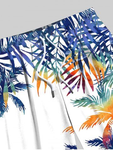 Plus Size Colorful Coconut Tree Leaves Branch Print Hawaii Drawstring Beach Shorts For Men - White - 3xl