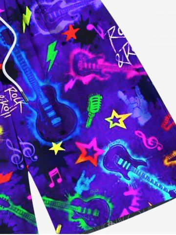 Plus Size Colorful Guitar Star Print Hawaii Rock and Roll Music Drawstring Beach Shorts For Men - Purple - 4xl