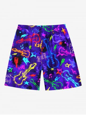 Plus Size Colorful Guitar Star Print Hawaii Rock and Roll Music Drawstring Beach Shorts For Men - Purple - 5xl