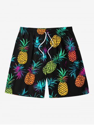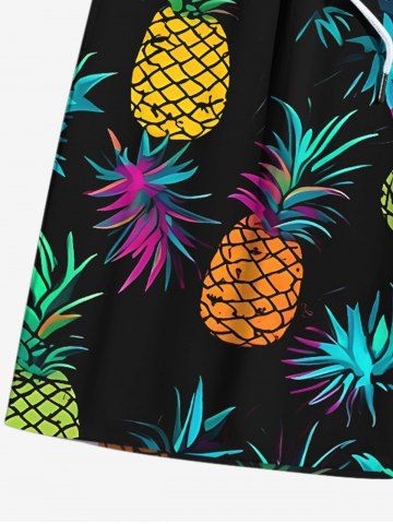 Plus Size Colorful Pineapple Print Hawaii Drawstring Beach Shorts For Men - Black - Xl