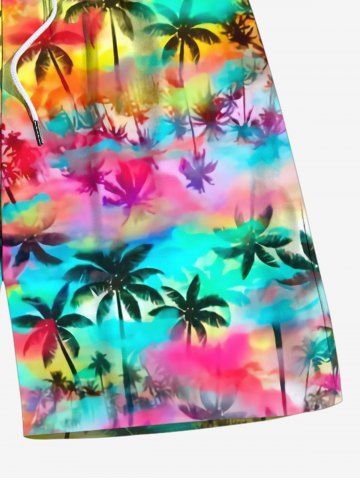 Plus Size Colorful Tie Dye Ombre Coconut Tree Print Hawaii Drawstring Beach Shorts For Men - Multi-a - L
